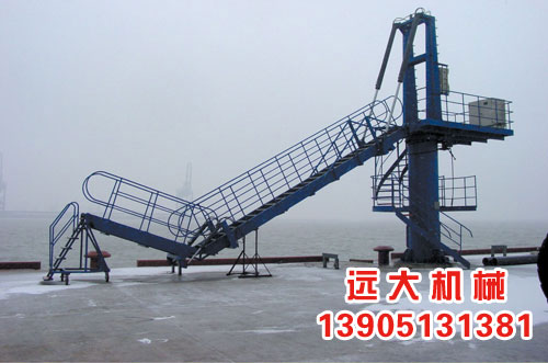 登船梯是現(xiàn)代各種大型碼頭在船舶停泊后,碼頭作業(yè)過程中,碼頭作業(yè)人員和船員安全順利上下船舶的專用設(shè)備。對于5萬噸級以上碼頭,油輪上自帶舷梯難以形成岸與船的安全通道,因此登船梯成了大型碼頭不可缺少的關(guān)鍵設(shè)備。